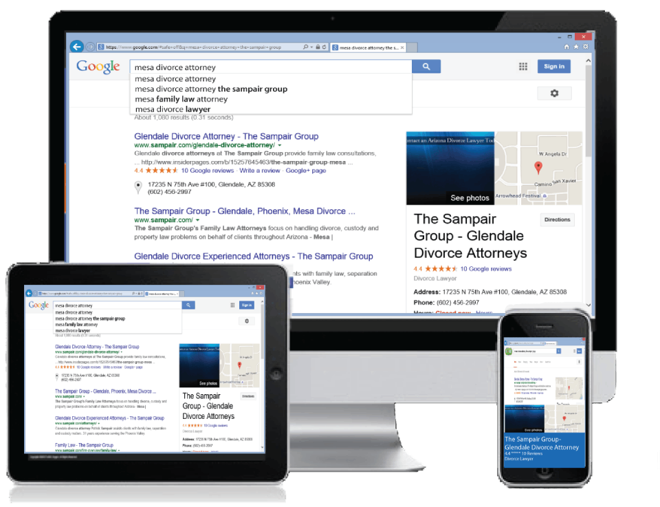 If you are a local company ready to put yourself in front or your competition, we can help you with our local Autocomplete-Optimization program. Get yourself in front of the people looking for your specific areas of practice, at the moment they are searching. Let us help you implement a program to capture the best keyword phrases that your customers use to find your local business.