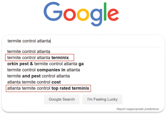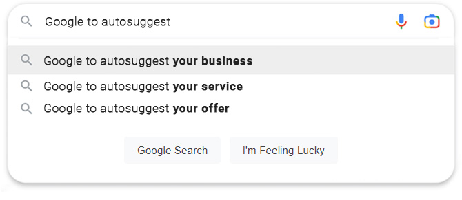 You will be the only company showing up in front of your customers in the auto-complete. And when they choose your company in the auto-complete, they bypass your competition and you own the entire first page.
